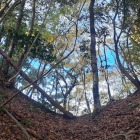 周辺は幾つものコースがあり、特に湘南平から高麗山はハイカーが多い。湘南平から浅間山を通り、八俵山に着く。以前はここにもお堂が建っていたらしい。すぐ東に大きな堀切があり、少し先にやや小振りな堀切が現れる。やや登って高麗山山頂に着く。城の主郭とあり以前はお堂が建ち、大堂(上宮)と今も名が付いている。主郭の西の土塁状の上が最高点になる。土塁に見えるのはお堂を建てる際に削平した残りとも言われる。東寄りの石段を下れば東天照(とうてんしょう)の分岐がある。位置的には主郭から北東に下り、登り返せば尾根をやや削平した二郭(?)に出る。明確ではないが東側に堀切と言われる場所がある。少し下に東天照の案内板があり、東の展望台の役目を果たしていた。鎌倉時代は白山社があったとも。先は急坂で下っている。
