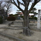 西隣には坂崎公民館、前庭は駐車可能、八百富神社との境に家康重臣平岩親吉に縁の有る平岩と射割石の案内板と三分割された平岩展示されていた。坂崎公民館西の入口には坂崎陣屋跡案内指示板が方向を指している。西の入口から南に折れると正源寺参拝者駐車場、当時葬儀中で正源寺石碑を撮って探訪終了。