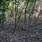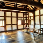 北陸街道に口を開く阿久和谷の入り口に二の城戸を設けて、数百mの谷幅全部を塞いでいます。一乗谷みたいです。杣山からの尾根に挟まれた少し開けた谷に居館跡があり、この手前に上記のガイダンス施設や駐車場が設けられています。居館跡の奥の害獣除けの柵を開けて、登城開始です。登場口はここと西の林道(中腹に駐車場あり)、東の花はす温泉脇からの三か所あり、山腹でも繋がっています。下から杣山を見上げると絶壁が見えます。教育委員会資料の地質図解説では、杣山はチャート層を頁岩層が挟んだ構造になっており、境界は断層。硬いチャート層が崖を作っていると。杣山城の前に登城したひうち城もチャートですね。山の上に池(殿池、写真10)があるようにけっこう高い位置から豊富に水が湧き出ており、頁岩を侵食して深い谷を作っています。居館跡からの道は残ったチャートの瘦せ尾根や崖を伝って行きます。姫穴、殿池を経て、西御殿跡の郭に至ります。既に結構、怖いですが、この後、もっと怖い場所に行きます。ちなみに、花はす温泉は、まわりに広い蓮池があり、各種の蓮が育てられている名所のようです。