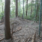 西側にも扁平地があり鉄塔が立っています。尾根沿いに西に行った先は出丸のようになっているけど、とりあえずここまで。残念ながら明確な堀や土塁などは見当たらなかった。