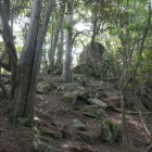 県の教育施設側から曲輪らしきところを観察しつつ駐車場裏から物見台へ。竹藪奥には本郭らしきものも見えるが立入禁止のよう。帰りは物見台の逆側から下りる。なんか山全体で色々残ってそうだけど地権者の方もいるだろうし、ツアーとかやってくれれば。