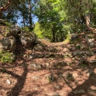 4郭から倒木を越え進軍すると、5郭です。主郭の石垣でしょうか?途中、破城の石がゴロゴロ転がっています。