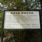 通行止になっている近くに「鈴木金七郎重正」の案内板があります。新城市富永旧川上村の鈴木一族の出で、天正3年5月14日に長篠城を鳥居強右衛門と共に出発し、岡崎城の家康に長篠城の窮状報告と援軍要請を行ったと記載があります。