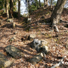 鮎河には4つの城がありますが大河原氏城もそのひとつ。見所は主郭東にある二重土塁(二重堀切?)でしょうか。祠のある主郭は高土塁と空堀に取り巻かれ北と東に広い副郭を設置しています。北西の林道を歩いて登城しましたが、東からのルートもあるようです。