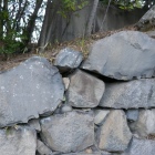 地質学雑誌に記載された西本昌司氏のレポートによって本丸搦手馬出の石垣の石の配置図を見ることができますが(ネットでも閲覧可)、訪問時は本丸搦手馬出は工事中で周辺は立入が禁止されていました。そのおかげで周辺の石垣も遠景でしか見ることが出来ない。