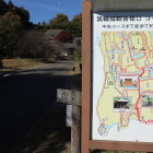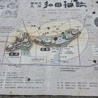 案内所に寄り篠島城への道順を聞く、南へ真っ直ぐ500m程で元小学校廃校への細い登城階段と東に廻り込んでコンクリート舗装の自動車道の案内が有り、東周りの自動車道が分かり易いと教わる。
