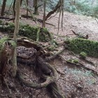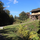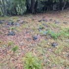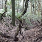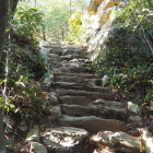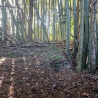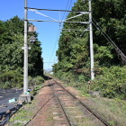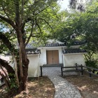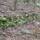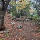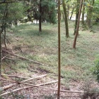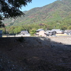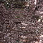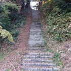 廃校建物が山の上に見えて、皆さんの投稿文と写真で廃校前の細い階段道を選択し、廃校の東横に到着、コンクリート舗装の道と合流します。