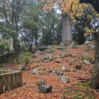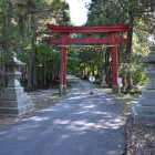 北側に自然石の篠島聖跡碑、石碑の前面に碑文、中心部に神社、祠が鎮座、東の入口に鳥居と城山水神天狗の石碑がる、入口から降りて出口に戻る。