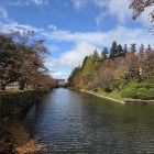 宮川門から天然の堀となる宮川沿いに北上、北門広場を経て西側に、遺構はありませんが作事門跡、田町門跡。