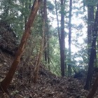 城址は丘陵の頂部に主郭があり、東に向かって郭が続いています。南側に道沿いに土塁が付いていますが、いつの時代の物かは不明です。