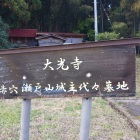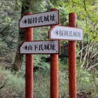 城域は廃校の南東に登り石段と紫の城山水神天狗の幟が有り従って登って行くと民家の細い道脇を進み、案内指示板と皆さんの投稿写真の石階段と城山碑、出口の様ですが曲輪切岸石階段を登り頂上の曲輪へ整備されていて、八大龍王と城山水神天狗の幟が沢山はためいている。