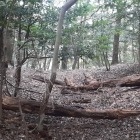 防己尾城を再訪しました。湖山池に突き出た丘陵上に築かれていて西の丘陵に本丸が置かれ東の丘陵にも三の丸(二の丸?)が配されています。余湖さんの縄張りを見ると南西に竪堀群が有るようなのでいずれまた訪れたい。腰郭の数は多いですが堀などの遺構はあまり無いようです。埋まっていて見づらいのかもしれません。