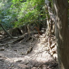 時枝城は遺構無く石碑のみ(県道629号線糸口交差点より南に約30mの道沿いに在る)ですが、堀跡かな?塁の痕跡かな?が見られる。
