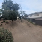 一盛長者伝説地の碑から続く砂利道がお城の入口です。最近の城あるあるで、城跡の広範囲に太陽光パネルが設置されていました。砂利道を進むと、西側の太陽光パネルが敷かれたエリアに土塁があるのが見えます。パネル越しだからなのか、かなり高さのある土塁のように感じられました。砂利道の奥まで進んで行くと主郭跡に至ります。現在は民家になっていて主郭跡の内部には入れませんが、民家の手前には、みごとな空堀と土塁が残されていました。