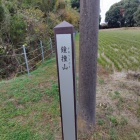 ナビに入力し畑道をまっすぐ進んだ先に緑の小山、その前に標柱がありました。