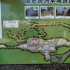 本丸の下、搦め手門方面の石垣を修復中でした。他の郭にも積み直し前の石が並べられているところも。二本の登り石垣は、まっすぐに単純なものと思ってましたが、現地の説明図見ると、かぎ型に分岐をいくつも作っているのですね。かなりな急斜面に作られているので、安定させるためにそうなっているのでしょうか。046カフェは、「戦に出ています」と掲示されていて、しまってました。もう少し粘れば戦から帰って来られたと思いますが、残念ながら先を急ぎます。
