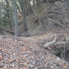 北側の尾根に周ってみた。伝勝頼本陣とされる丘陵の北を守る位置にある。このあたりは林業が作ったと思われる掘道や土盛らしきものがある。土盛は南側に付いている、私なら北側に付けるだろう。しかし、この林業と言うものはやっかいだ・・全国の山城に林業の爪痕はいっぱい有って遺構と判別がつきづらい。
