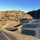 個人的には、天守台跡から大空堀に向かう途中で上から見える景色で、本丸東側の土塁越しに見る本丸の景色が気に入っています。