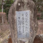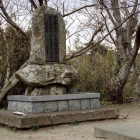 小学校から歩いて5分ほど。城の乾門があったと伝わる跡に建つ真願寺へ。境内には数少ない城の遺構とされる礎石と、大谷吉継敦賀城の石碑が見られます。