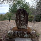 頑張って登ると尾根上に出ます。左方向が城跡で右方向は馬の足と呼ばれる巨石と寺院跡があります。城跡を見たあと巨石までは行きましたが寺院跡は距離の表示が無くだいぶ進みましたが断念しました。尾根上から左方向に進んでいくと尾根曲輪になっていて、虎口・木戸跡のような巨石があります。城跡の搦手から入るようで、尾根の薄い堀切を超えたり、2連竪堀があったりして主郭の背後に着きます。主郭背後の大空堀は幅が10m以上あって見応えがあります。堀切も兼ねていて竪堀となって下に落ちています。主郭の切岸は急峻で登り着くと小さい主郭があります。土塁囲みだったようですが、背後の空堀側と正面の虎口跡に土塁が残ります。正面虎口跡には石積みが僅かに残っていますが年月でだいぶ崩れてしまっています。大手道側がかなり急峻で主郭の下に2段程腰曲輪がある程度で織田信澄が仮居城としたと思われるような広い曲輪は見受けられませんでした。大手道の方を下って行けば近道できそうな感じはしましたが、来た道を戻りました。走行距離371㎞無事走破。
