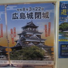 広島城の天守閣は五重で入母屋造の基部を持つ望楼型天守で、元々は東南に小天守を伴う連結式の天守でした。戦前は国宝に指定されていましたが、昭和20年8月6日、米軍機が落とした原子爆弾によって広島の市街地は壊滅、そして爆心地より約980メートルの位置にあった広島城の天守閣などの建物も倒壊しました。戦後、昭和33年に鉄筋コンクリート建てで大天守は外観復元天守として再建されました。それもコンクリートの劣化、耐震性の問題や設備の老朽化などの理由から今年の3月22日で閉鎖、しばらくして取り壊す予定となっています。その後は木造で再建することが検討されています。
