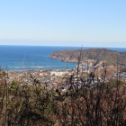 登城は あさんの2番手です。<35.575207, 134.329745>ポイントに仙英禅師碑の分岐の看板がありますので車1台分ある広い道を登っていきます。浦富配水池(貯水タンク)から山道になって進んでいくと添付写真の分岐看板があるので左手に進みます。山の尾根に上がりきると右手に仙英禅師碑があります。左手を進み、2つほど堀切を越え切岸を登ると あさんの投稿時のまま笹藪化した主郭があります。笹藪は背丈くらいに伸びていて主郭を縦断して向こう側に行くのは不可能でした。眺望の見える曲輪端っこまで人が通れる整備がしてありました。眺望は良いです。満足度は眺望の分1こおまけ。