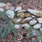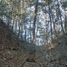 1. 兎山城跡 砦群の西端に位置する。兎山と八王子山間の鞍部は道路が走り、車で来られるが散歩コースの駐車場利用する。八王子山などの標識を頼りに左回りに行けば鞍部に出る。鹿田山散歩コースからは外れ、入口は兎も角、奥は笹藪になるが踏み跡は分かる。ここだけ城と名があるが、木々の生い茂る狭い頂部で、周囲を含め遺構らしきものは分からず。