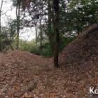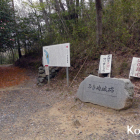 7合目付近に石積があり、すぐそばに時代がわからない横穴もあります。