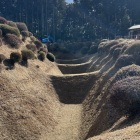 他のお城では平らに曲輪を作りますが、粘土質で作りきれなかったから、わざとなのか、経年の変化なのか、曲輪のはじが斜面になっているところが結構あります。それがまた面白い。今は芝を植えてくれてありますが、土が粘土質と斜面が多いので、靴はスニーカーでないと滑ります。