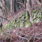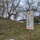 さて、小丸城です。本丸の石垣や石組み登城口は素晴らしいですが、土塁や郭のなごりの微高地も良いですね。本丸を囲むように二の丸があって、常安楽院の西裏の北西隅の土塁の高まりが櫓台と見受けました。説明板には、「本丸、二の丸、三の丸と隅櫓の遺構がよく残されている」とあって、隅櫓がどの郭にあったのか判然としませんが、きっと、常安楽院裏の北西隅が隅櫓跡と思います。三の丸が、野々宮廃寺あたりではないかと思います。二の丸には、ふきのとうやつくしが生えており、春の訪れがやや遅いのだなあと感じました。