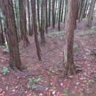 平須賀城での予想外の大勝利に気を良くして苗代川池への細道へ。この前にも途中までは行ってるんだから余裕 余裕と思っていましたが、路上には礫がごろごろしている上にやっぱり道幅が狭い…。脱輪の恐怖に襲われながらそろそろと車を走らせて、この前に転回した箇所(あ さんご案内の駐車スペース)から登城開始。少し戻って分岐を右に進み、苗代川池東岸の林道を北へ。林道は土砂や落葉が堆積してひどい状態ですが、歩いて行く分にはさほど支障ありません。そして壊れた砂防ダムからの分岐では「①谷を行く」を選択。国土地理院地図の道だけあって随所に案内表示があり迷うことはないものの、ご案内にあるとおり最後は壁のような急斜面を直登することになりました。尾根筋に出れば、あとは尾根沿いに北に進むだけ。だらだらと距離があるのと、ところどころにシダの藪はあるにせよ、分岐は全くないので道に迷う心配はありません。そして最後に少し登ったところで赤松城に到達。