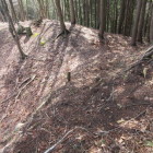 丘陵のほぼ中央になる堀切を挟んで標高165mの東の城域と標高172mに位置する西の城域からなっています。西側の主要な郭近くにある大堀切は圧巻で、周辺には畝状空堀群を見ることができます。期待以上の遺構でした。ただ、この日は雨の影響で堆積した落ち葉と水分をたっぷり含んだ土の影響で滑りやすく散策に難渋しました。