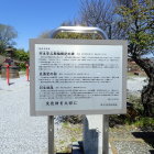 説明板にあるように、九頭竜川、日野川の合流点にあり、北は九頭竜川、西は日野川、東南は深田に守られた立地です。九頭竜川は、暴れ川として有名ですが、日野川も大きな川です。新田義貞が督戦に行く途中に打ち取られたという藤島城方面を見ると白山に雪が残っていました。日野川堤の桜並木が満開でした。