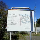 天方城址案内板は元天方小学校南、八幡神社南の間の土塁土手前に在ります。(グーグルマップの史跡マークに記載あり)