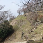 登城ルートはに西の丸中段より南に廻って桜ビューポイントの西の丸南東下で本丸下段櫓門枡形跡丸石垣と桜を入れて撮影、本丸櫓門枡形下に降りて本丸東虎口周りの桜を入れて撮影、北の丸へ回り、本丸東土塁の崩落は以前のままでしたが少し雨による崩落が進んで居る様です。北の丸の一本大桜と松尾山登城坂階段を入れて撮影、本丸裏手の北側土塁と白い大島桜を入れて撮影、北の丸から本丸東虎口より本丸へ、天守台、裏手の大島桜は表から撮影すると順光で奇麗に撮れる。本丸、西の丸、西の丸は桜は若いが植栽が多いので花見広場に成っている、しかし時間が遅くなって花見客無し。