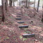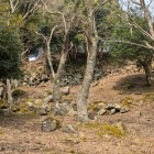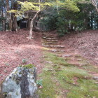 衣笠城址バス停から徒歩で向かいましたが、軽い山登りでした。表にお寺があり、階段を上ると郭の跡であろうと思われる平削地にたどりつき、さらに奥に行くと一段上がった郭がありました。