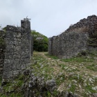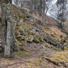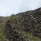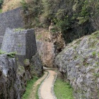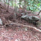 かなり急な下りに用心しながら進むと目の前に広がる石積み。