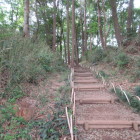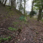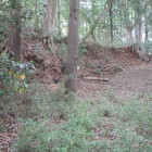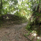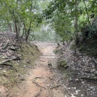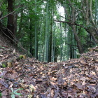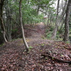駐車場横からの林道をそのまま進むと城域南側に出て、本来の進入路に至ります。山の西側を巡り、南東方向まで回り込むので、ちょっと不安になります。