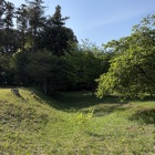 遺構はおそらくその裏側のところの土塁的なものかな。