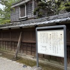 旧折井家は江戸後期築の母屋と長屋門からなり、長屋門は馬屋が事務所、仲間部屋が休憩所、物置はそのまま物置として活用されています。母屋の式台から玄関に上がると、天井から提げられた武具掛けに槍と弓が並べられています。玄関の隅では侍の人形がお出迎え。人形が動きますと受付で聞かされていても、想定よりリアルな人形で驚かされました。奥座敷にも当主と奥方、子供の人形が鎮座しています。こちらも動き出すのか? と少々身構えてしまいました(動きません)。奥座敷の奥には中庭が広がり、池や庭石は往時のままだそうです。いったん母屋を出て台所の土間を抜けると井戸と風呂があり、その先の資料館には鎧兜に弓矢や火縄銃、陣羽織や裃、藩札や検地帳などが展示されていました。