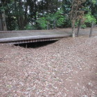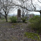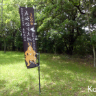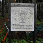 福井新聞オンライン2018年5月3日「朝倉山城跡(福井市) 戦国末期の特徴残す ふくいの山城へいざ」を参照。縄張り図がついています。城びと先人に倣って、北麓の登山者用駐車場を利用して、その横の林道から登っていきました。途中に手作りの道標があり、林道を離れて北側の急斜面を登っていきます。城域は、けっこうな土木量の造作です。主郭切岸上部に石垣の痕跡がありました。南側は緩斜面につき、段曲輪、土塁、堀切で守りを固めています。主郭の鉄骨の櫓の最上部に鐘が吊るしてあり、しんちゃんさんと同様に、大きく鳴らして、獣たちに人間がいることを知らせてやりました。
