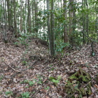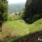 遺構は開墾等によりかなり破壊されていますが、堀の一部といわれている「枡形池」が北側にあり、その南側には曲輪跡と思われる広い場所があります。ほかにも土塁や空堀などを観ることができます。愛宕山には櫓でもあったのでしょうか。愛宕山の南側にも堀跡のような地形がありました。倒竹が多く侵入は断念しています。西へ歩いて行くとやはり堀のような地形がありましたが、後世のものかもしれません。