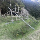 野田城〜長篠城までのお城は、ほとんど豊川に突き出た河岸段丘を利用しての平山城で、他の地域に比べて先端が尖った△形状だと感じる。よって、必然的に後堅固な形状で似たような縄張りなのに、築城時期や理由が各々異なって興味深い。長篠城に行くといつも設楽ケ原の馬防柵に寄るが、手前の三段構えだけ見て帰っていたが、今回奥まで歩いて行った、「なるほど、実際の馬防柵はこのようだっただろう」と感じれる復元があった。