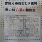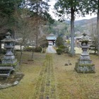 吉岡一門は、室町時代に将軍足利家の剣術指南役を務めた名門です。最初は京都洛外の漣台野で、吉岡家の当主「清十郎」と対戦し一撃で倒します。次はその弟「伝七郎」をも一撃で倒します。面目をつぶされた吉岡の門弟たちは、敵討ちと称しこの場所に武蔵を呼び付け決闘しました。しかし武蔵は、ここで100人以上の門弟を相手にした決闘を制し、全国にその名を知らしめたようです。さらに5分程登ったところにある「八大神社」は、決闘の前に武蔵が祈願した場所だとされ、武蔵の銅像がありました(写真④⑤⑥)。