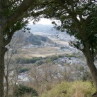 有りました! 遠目に見たくても、木立に隠れて見えない位置なんですね。石碑が見えたと言っても、正面でないし、近寄れないので、「有りました」というところです。