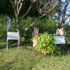 天王山陣所から南に少し移動すると設楽原歴史資料館があります。駐車場との境に馬防柵があり、周囲には土塁があります。後世のものだと思いますが、なんとなく陣地の雰囲気が有る資料館です。資料館の南側に墓所が有り、竹広の住人が戦死者の亡骸を葬った信玄塚があります。合戦では両軍合わせて1万5000もの死者が出たとされ(正確な数は不明)大塚・小塚の二つがあり、大塚が武田軍 小塚が織田・徳川軍の死者を葬っているとされます。身ぐるみはいだあとだと思いますが、合戦ともなれば田畑は荒れ、地元も結構な損害を被るわけで戦死者の鎧や刀などを売るのはやむを得ないとされていたようです。