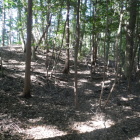 そんなわけで尾根沿いに北上していくと、堀跡らしいものがある。その上には尾根を削って簡易的な郭を作った陣地がある。こんなの関ヶ原の山の中で見たことがあるなあ・・また変なものを見つけてしまったのか?