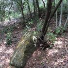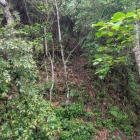 尾根の先端部は二ヵ所 二段にわたって石積で補強がしてあるようだった。先端は急峻で林業の人が足場を固めるために築いたのだろうか? だがこんな急なガケみたいな場所を通るのか? 武田方が築いたにしても、あまり武田軍が石垣を築いたというイメージは無い。