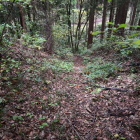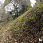 永正8年(1511年)細川高国と細川澄元による芦屋河原の合戦の舞台となった城です。日本城郭大系によると鷹尾城は平城と山城とがあり、平城部は宅地化により遺構は消滅しているようです。山城部にはいくつかの削平地、土塁、堀切、竪堀などが見られますが、戦時中、高射砲の観測塔が建てられ、それに伴って塹壕が掘られ曲輪の形状が不明になっています。ハイキングコースとしても整備されているため、正確な縄張り図は示すのが困難で推定図が掲載してありました。推定図に記載されている空堀跡は二重空堀でいい感じに残っています。塹壕跡かもしれないとも思いましたが、日本城郭大系に空堀跡と掲載されているので空堀跡と思うことにしました。ただ空堀跡だとすると変わった縄張りです。登城口からNHK山芦屋テレビ放送中継所を経由して鷹尾山山頂まで行き引き返してきました。NHK山芦屋テレビ放送中継所を過ぎると空堀跡などがあります。城跡らしい場所を撮影してきましたが、上記の理由で確信はありません。