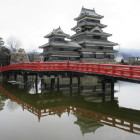 徳川家康が小田原の北条氏の後に関東に移り、それに伴ってこの地を治めていた小笠原氏も関東に移りました。その後にこの地を治めたのが石川数正です。石川数正、康長父子によって松本城は大規模に改修され、城下町も整備されました。数正は天守を建てたと思われますが、現存する五重六階の大天守は子の康長の時代に建てられたと考えられています。城びとの「松本城 国宝天守をもつ唯一の平城」の記事によると数正が建てた天守は、部材を転用して三重四階の乾小天守に改築されたようです。寛永10年(1633)に入った松平直政によって辰巳附櫓と月見櫓が増築され、今の姿になりました。黒い武骨な天守閣にあって月見櫓は平和な時代の象徴でしょう。
